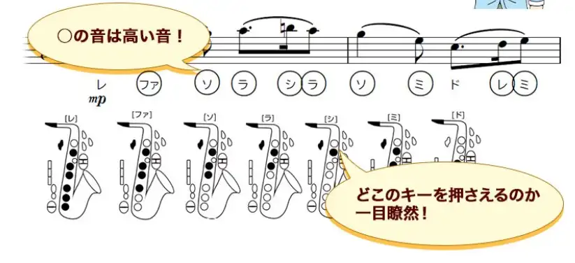 楽譜が読めなくてもドレミと運指図付きでいきなり吹ける