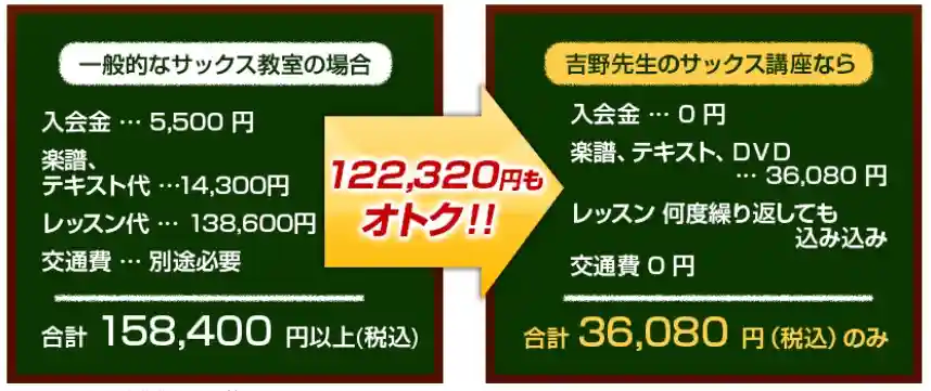 比較項目一般的なサックス教室吉野先生のDVD講座